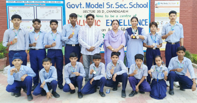 चंडीगढ़, 26 सितंबर। चंडीगढ़ स्कूल शिक्षा विभाग, चंडीगढ़ प्रशासन द्वारा आयोजित इंटर स्कूल स्टेट टूर्नामेंट 2025-26 के सेकंड फेज में गवर्नमेंट मॉडल सीनियर सैकेंडरी स्कूल सेक्टर 35-डी, चंडीगढ़ के खिलाड़ियों ने शानदार प्रदर्शन किया। स्कूल की प्रिंसिपल सीमा ग्रोवर ने सभी विजेता खिलाड़ियों को मेडल पहनाकर सम्मानित किया। इस उपलक्ष्य पर प्रिंसिपल ने सभी मेडलिस्ट खिलाड़ियों और उनके स्पोर्ट्स टीचर कुलदीप मेहरा को बधाई दी। स्कूल के स्पोर्ट्स टीचर कुलदीप मेहरा ने बताया कि इस बार स्कूल के खिलाड़ियों का प्रदर्शन काफी अच्छा रहा।